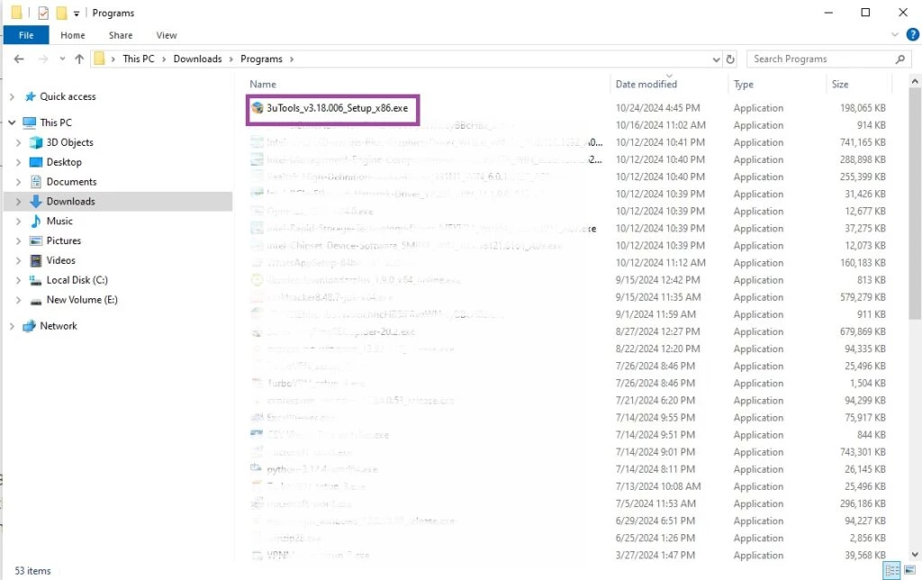 İndirilen 3utools.exe dosyasını bulmak içinİndirilenler klasörünüze gidin , çift tıklamayla açın ve kurulum sürecini başlatın. Uygulamanın güvenilirliği hakkında sizi uyaran herhangi bir güvenlik istemi görünürse, bunu görmezden gelin ve " Her Neyse Aç "a tıklayın ve hedef seçin, hüküm ve koşulları kabul edin, kurulumu onaylayın vb. gibi ekrandaki talimatları izleyerek kurulum sürecini tamamlayın.