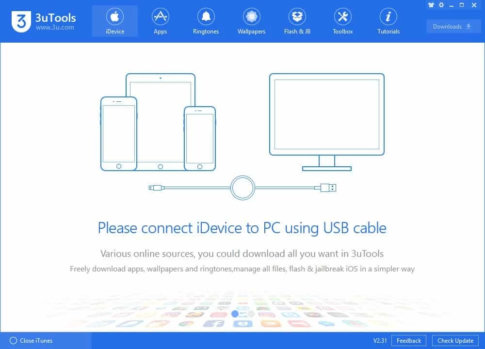 3uTools , iOS cihazlarınızı (fotoğraf galerisi, videolar, yüklü uygulamalar, ses dosyaları, zil sesleri vb.) yönetmek için kullanılan Windows tabanlı bir yazılımdır . Kullanıcıların kısıtlamaları aşmasını , uygun donanım yazılımını seçmesini vb. sağlayan jailbreak ve flash özellikleri sunar. Birden fazla yardımcı aracın kullanılabilirliği, kullanıcılara gereksiz dosyaları temizleme, yedekleme oluşturma, video formatı dönüştürme, kilit açma, uygulama yükleme ve kaldırma gibi ek özellikler konusunda yardımcı olur. iOS cihazlarınızın aktivasyon, jailbreak, iCloud kilidi, pil ve diğer bilgiler dahil olmak üzere çeşitli durumlarını kolayca izleyebilirsiniz .